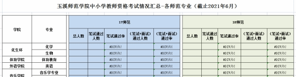 2.汇总17级和18级师范各专业到现在为止的中小学教师资格考试通过情况,格式见下图。
